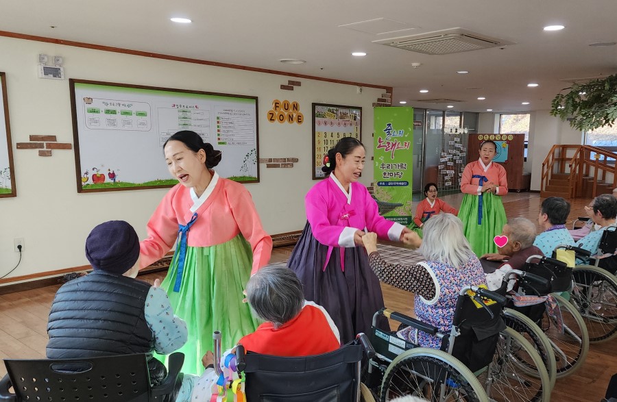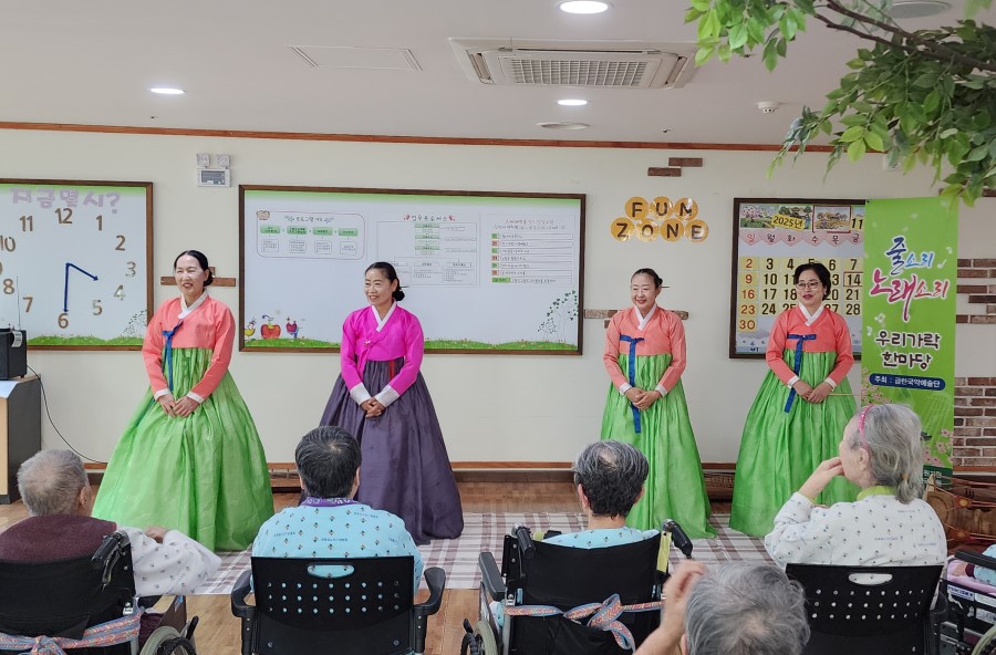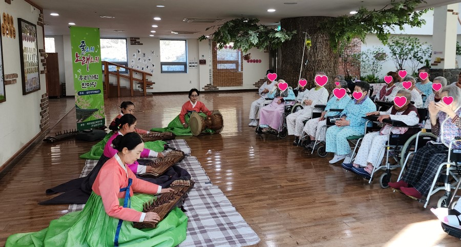 가야금 연주의 은은한 선율과 아름다운 노래가 어르신들의 마음을 편안하게 해주었으며, 공연 내내 밝은 미소와 박수가 이어졌습니다.