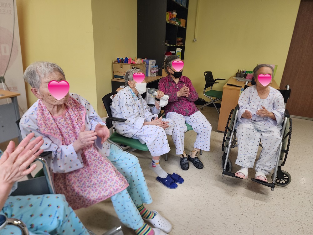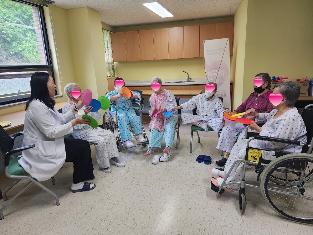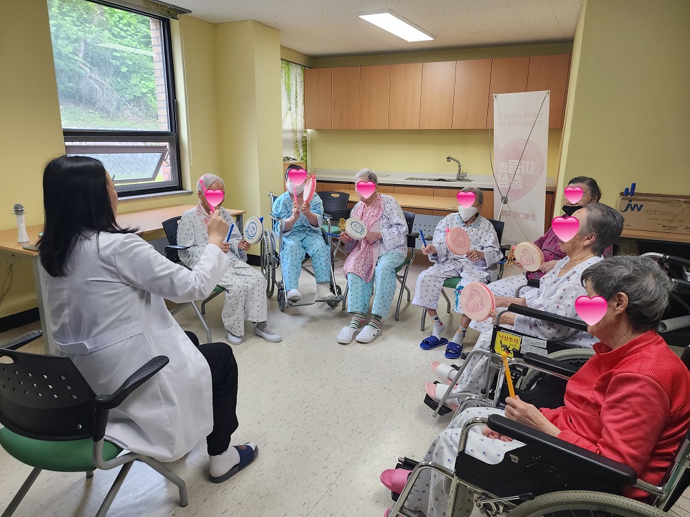 두 번째 활동에서는 ‘님과 함께’ 노래를 부르고 지시에 따라 소고를 연주하는 인지활동을 진행했는데요~