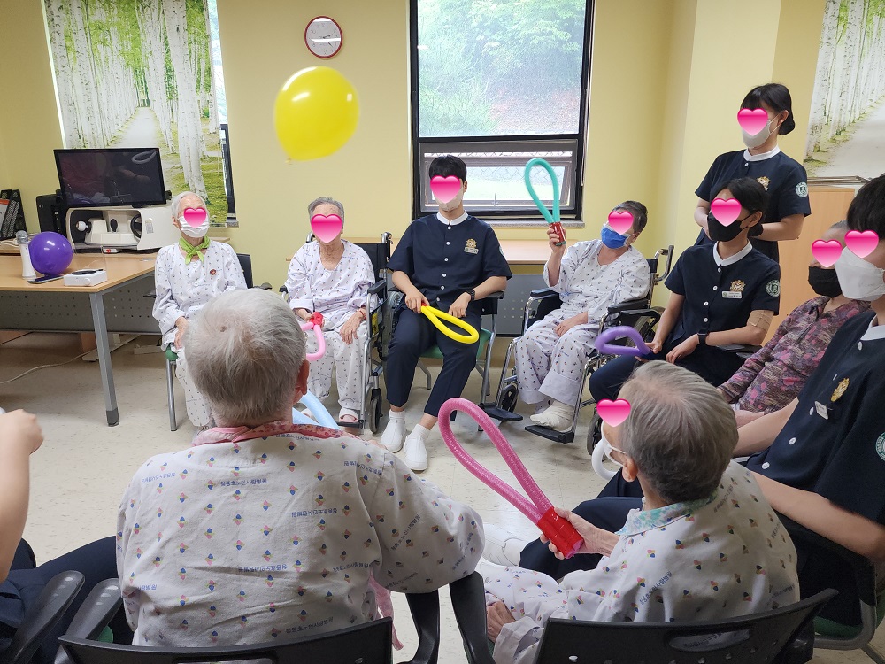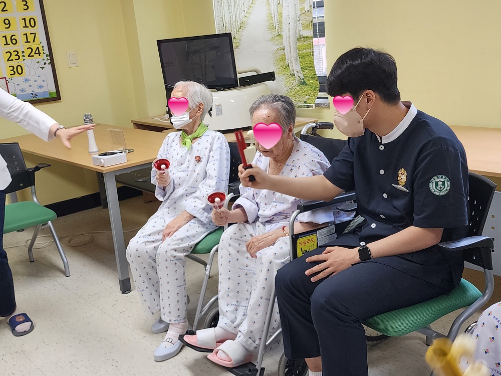 어르신들과 간호 실습생들이 짝을 이루어 아름다운 합주를 완성했습니다. ^^