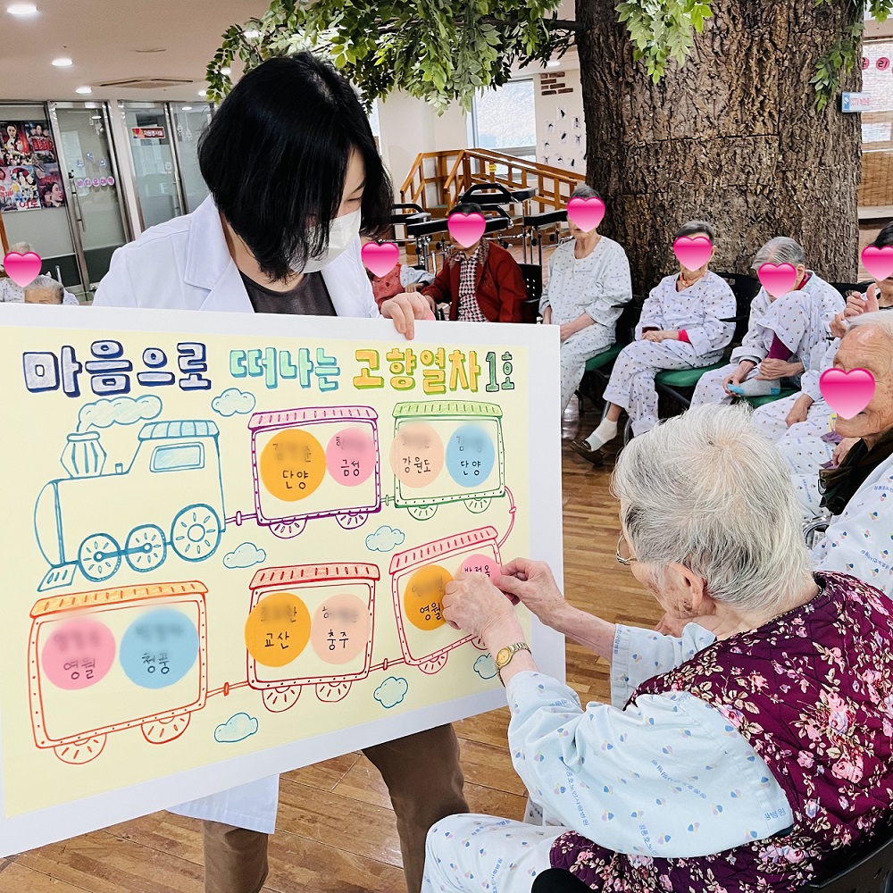 "고향의 봄"노래를 함께 부르고, 각자의 고향을 이야기 하며 동향분들도 찾아보는