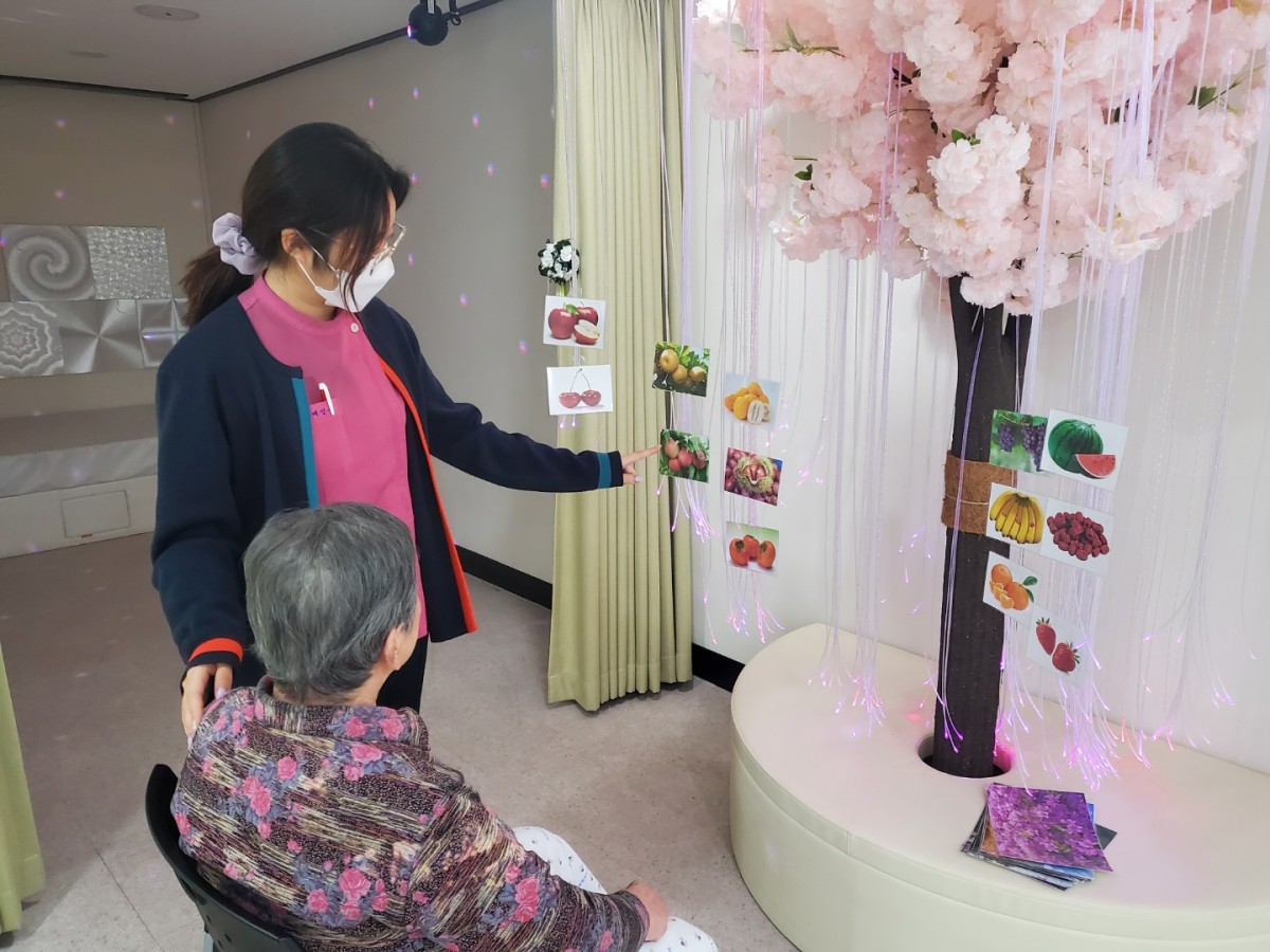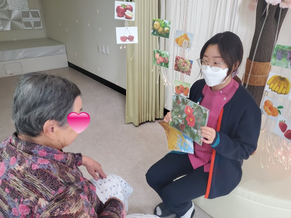 어르신께서는 "우리 집 앞에는 감나무가 있어서 언니들이랑 나눠먹고 그랬어."라고