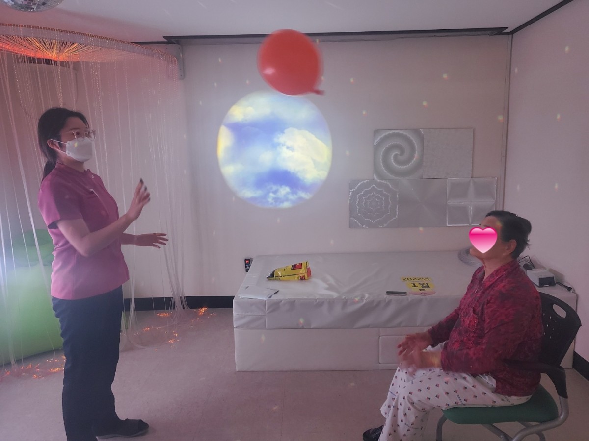 "잘하긴 뭘 잘해~"라며 부끄러운 듯 미소를 보이시며 풍선을 손바닥으로 치면서 즐거워하셨습니다. •⌄•